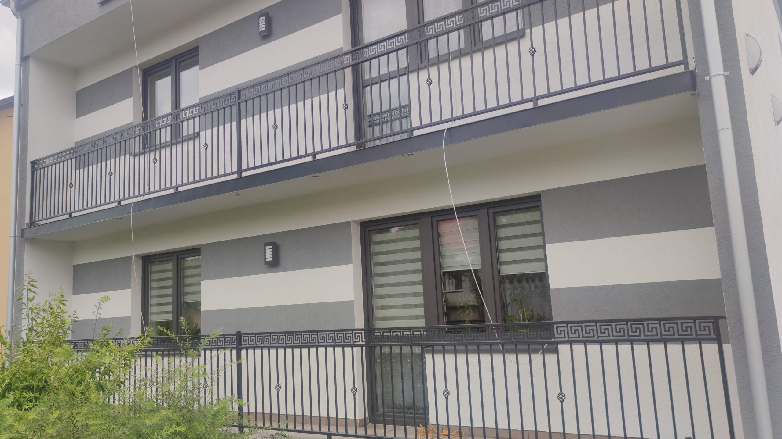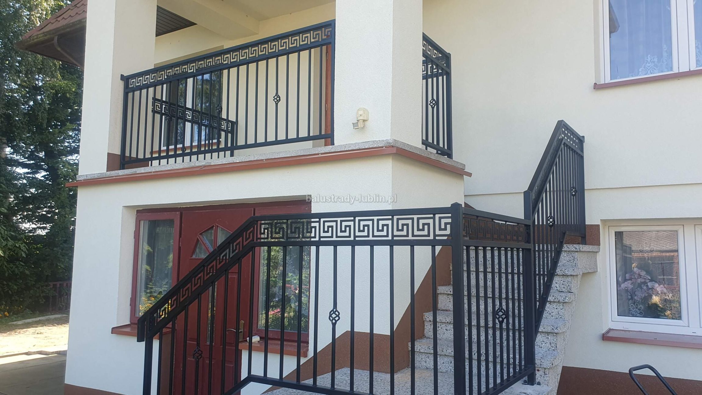 Charakterystyka balustrady: – Profile poziome 40x30x1,5 – Tralki profile pionowe 15x15x1,5 – Nogi profil zamknięty 40x40x2 – Wysokość balustrady 100cm – Elementy ozdobne wzór grecki