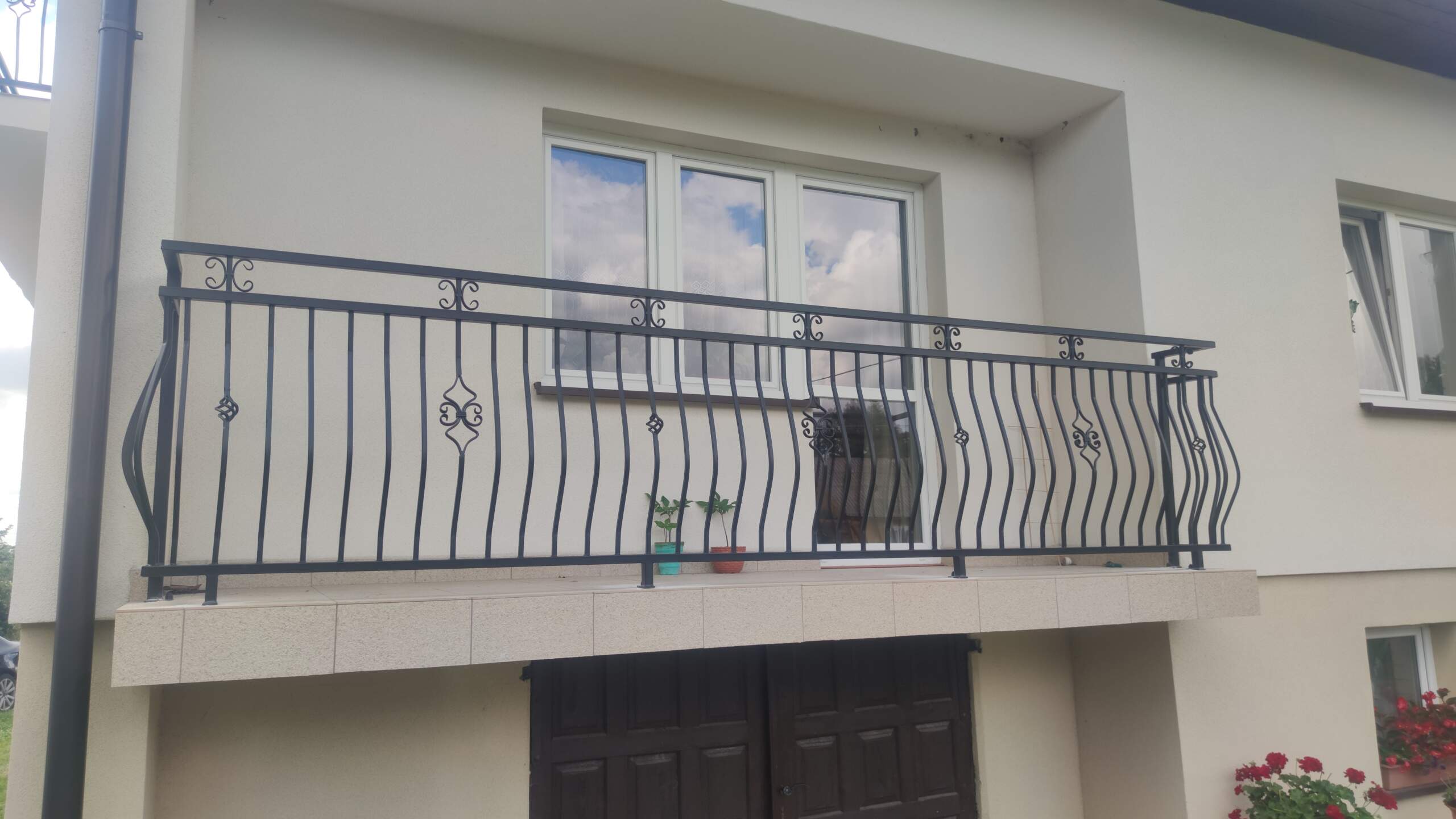 Charakterystyka balustrady: – Profile poziome 40x30x1,5 – Tralki profile pionowe 15x15x1,5 – Nogi profil zamknięty 40x40x2 – Wysokość balustrady 100cm – Elementy ozdobne i rozetami